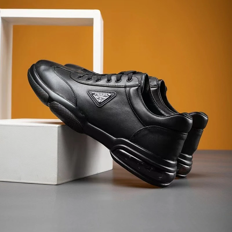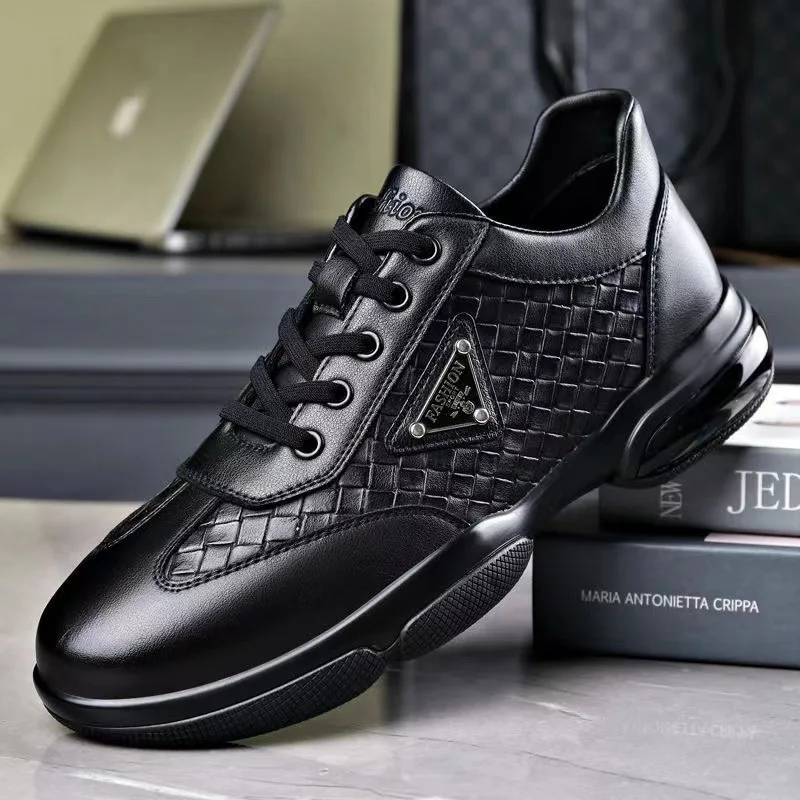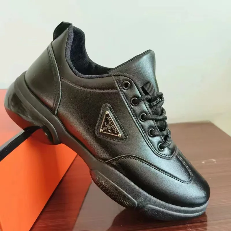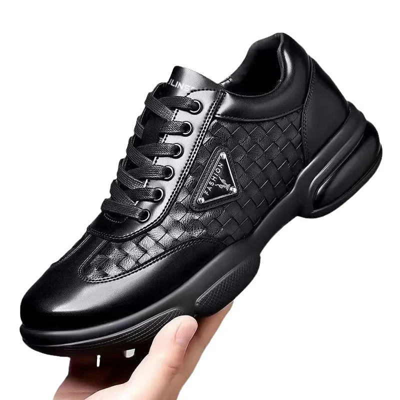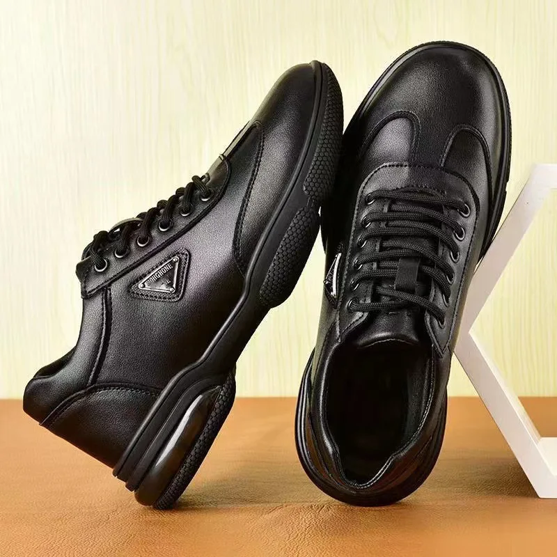 2025 Summer Round Toe Leather Upper Lace-Up Casual Shoes Men’s Korean Style Black Business Breathable Soft Sole