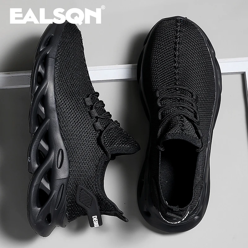 Men Sports Running Black Jogging Shoes Casual Sneakers Brown Outdoor Breathable Mesh Women Light Shock-absorption Black Tennis